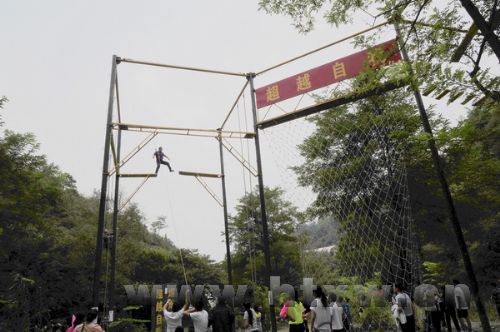 进行高空断桥挑战。 (田耀 马青华 摄)