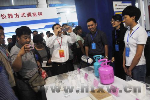 图①东岳集团的新型制冷剂和离子膜等产品吸引了与会人员的关注;