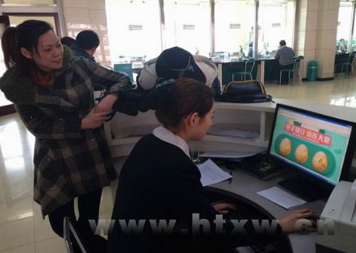 近日,农行桓台县支行开展了“注册赢幸运”抽奖活动,凡是2014年新注册为农行电子银行的客户,均有机会参与抽奖,吸引广大客户参与。图为工作人员演示参与流程。