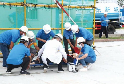 为进一步熟悉、规范应急预案处置流程,提高施工现场突发安全事故应急救援能力,7月17日,张店区召开建筑施工安全管理暨生产安全事故应急演练现场观摩会,山东新城建工股份有限公司承建的张店区解营村旧村改造项目,作为样板工程迎接现场观摩。淄博市质安站、张店区政府安委会、张店区质安站及张店区全部在建项目建设单位、监理单位、施工单位相关负责人300余人参加。