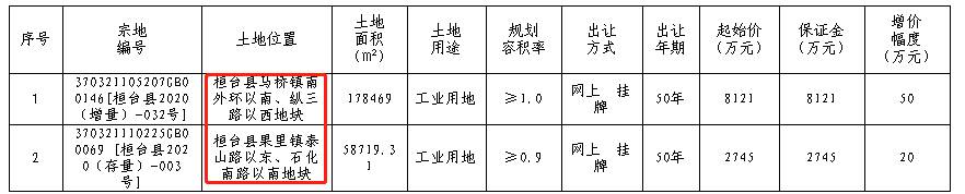 11月6日,淄博市公共资源交易网发布《桓台县国有建设用地使用权公开出让公告(桓自然交告字〔2020〕18号)》,桓台有2宗地国有建设用地使用权公开出让。