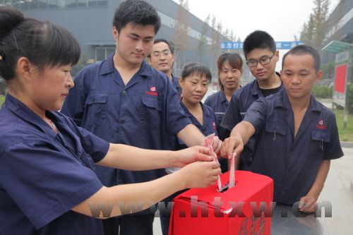 近日,山东万吉塑胶有限公司车间职工李燕的女儿因病住院,高昂的医疗费用让原本就不富裕的家庭雪上加霜,万吉塑胶公司负责人了解情况后,立即组织全体干部职工爱心捐款11200元,让他们感受到了公司这个大家庭给予的温暖和力量。图为员工踊跃捐款。 (张晓明 摄)