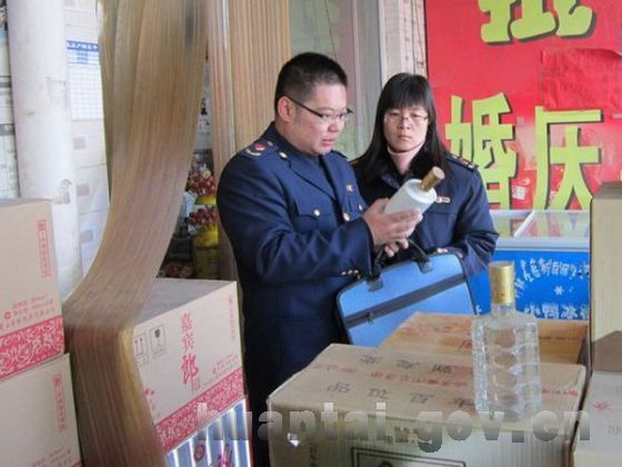 为规范我县白酒市场流通秩序,保护名牌商品知识产权,近日,县工商局对辖区白酒市场进行了专项检查。 此次专项检查共检查酒水零售业户85家,涉及14个白酒知名品牌37个类型,查扣涉嫌假冒白酒40瓶。通过此次专项检查,进一步净化了我县名牌白酒市场,确保人民群众健康安全消费。 (张运波 孟祥军 摄)