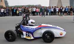 10月8日,河北工程大学的同学们利用一年零一月时间完成了一辆方程式赛车。据介绍,整车是一辆后轮驱动单人驾驶的竞赛类汽车,四缸式进口发动机,压缩回弹并调试减震器,手动、电动双换挡,纯手工打造。该车不仅操作方便而且性能安全稳定,在专门场地下速度可达140km/h,75米直线加速只需6.9s即可完成。