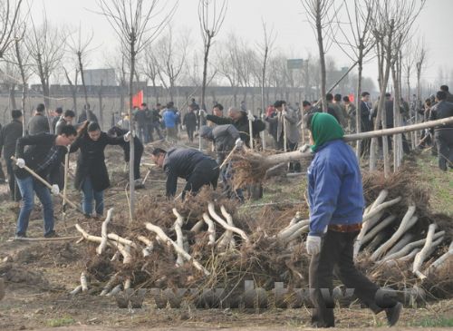 我县干部群众在滨博高速桓台段绿化工程现场参加义务植树活动。 (成国栋 摄)