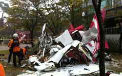 >韩国首尔一直升机撞上高层公寓楼坠毁