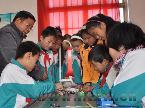 索镇睦和小学注重进行科技教育,组织科学实验兴趣小组,指导学生通过实验认识各种自然事物,探索规律,培养学生的观察能力、动手能力和想象能力,提高了学生的科学素质和综合素质。图为该校科研小组在老师的指导下进行科技实验。
