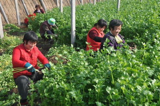 春节临近,荆家镇陈桥村实秆芹菜标准化示范园里的实秆芹菜进入收获期,图为菜农正在收获实秆芹菜,准备供应节日市场。近年来,我县大力发展实秆芹菜种植,规模不断扩大,品质不断提升,品牌知名度越来越高,成为我县发展生态特色农业一大亮点。 (成国栋 张瑞瑞 摄)