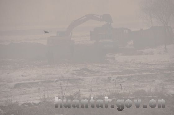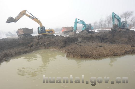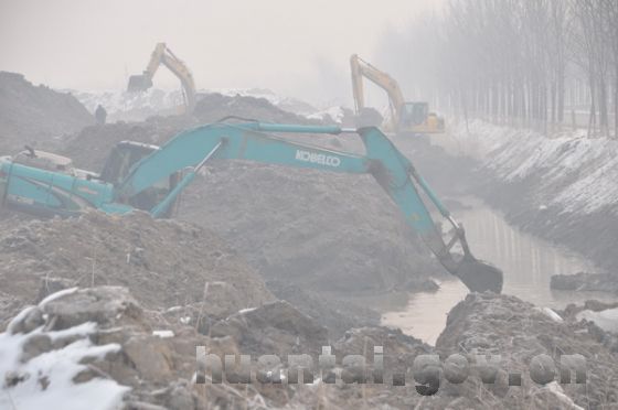 隆冬时节,马踏湖湿地生态修复蓄水工程施工现场一派繁忙。