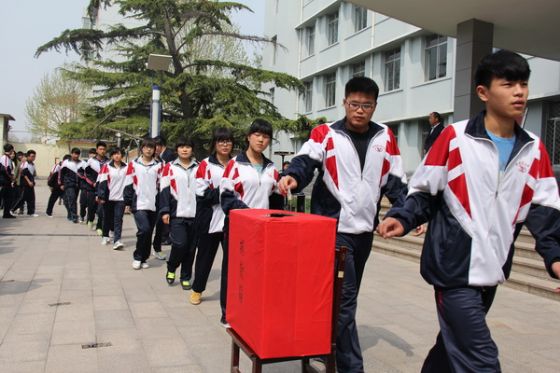 雅安地震牵动着亿万人的心。4月22日,淄博建筑工程学校师生举行“祈福雅安,加油中国”爱心活动为雅安祈福。广大师生纷纷伸出援手献爱心,共筹集善款16260.5元,第一时间交到县慈善总会。(岳可华 胡婷婷 摄)
