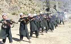 英国《每日邮报》4月22日刊登了一组“少年突击队”的照片,照片中的男童5岁大小 ,他们并排坐在一起,看上去似乎是在参加一项校外活动。不过,他们手里却举着AK47突击步枪,并进行一阵猛烈的射击。