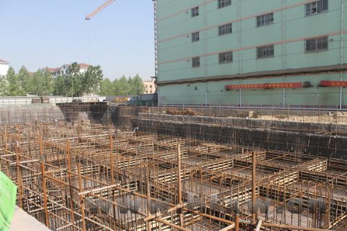 近日,记者在信誉楼扩建项目建设现场看到,工人们正在进行浇灌混凝土,全力以赴赶工期。