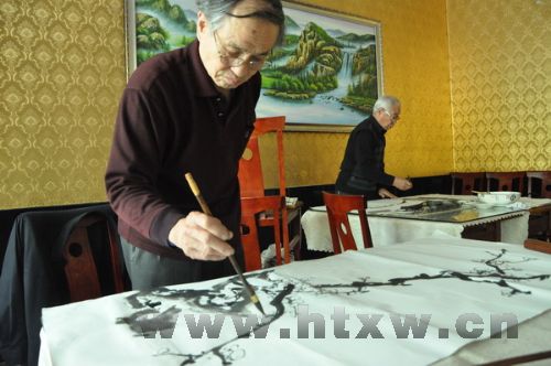 4月27日上午,县老干部书法学会少海分会举行庆“五一”文化进企业老干部书画文艺展示活动。与会的老同志们纷纷挥毫泼墨,用一幅幅精美的书画作品表达出他们对我县文化事业的热爱和对新生活的美好向往。 据了解,当日上午共创作作品50余幅。 (何子强 王锡广 摄)