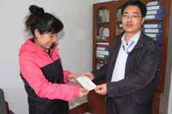 雅安地震牵动着全县人民的心。连日来,我县社会各界及广大干部群众纷纷捐款,奉献爱心。截至目前,县红十字会已收到55567.2元善款。图为5月2日,县红十字会工作人员接收县实验中学全体师生捐助的34017.2元善款支票。