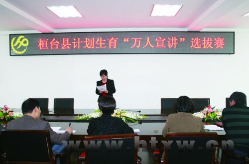 4月26日下午,县人口计生局三楼会议室座无虚席,县人口计生局计划生育“万人宣讲”选拔赛正在进行。现场气氛热烈,妙语连珠,充分展现了我县广大基层计生工作人员的良好素质和精神风貌。