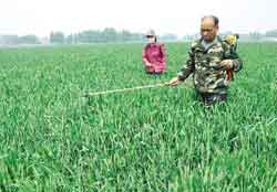 当前我县小麦已进入抽穗扬花期,是小麦生长的关键时期。为防止出现早衰,提高粒重,预防旱、涝、风、病虫、倒伏等情况的发生,我县农民积极加强麦田管理,确保夏粮丰收。图为新城镇一小麦种植户在田间进行喷药,防治小麦病虫害。