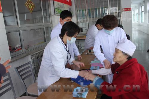 近日,县卫生系统组织开展“健康山东志愿者护佑健康行动”,向群众发放疾病防控、预防保健宣传材料,免费为群众测量血压,开展义诊及健康咨询活动。图为志愿者在为老人义诊。 (张晓明 于军 曹钰 摄)