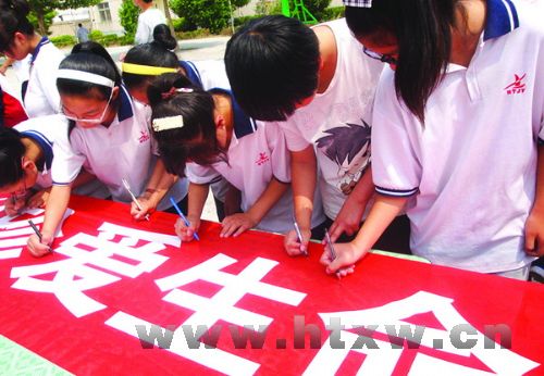 暑假来临,为提高学生的安全意识,近日,果里中学向全体师生发出了“珍爱生命,预防溺水,从我做起”的倡议,要求学生严守学校纪律,时刻注意安全,不去危险地段玩耍,不私自下水游泳。在现场,全校师生纷纷在“珍爱生命、远离危险、预防溺水”横幅上郑重地签上了自己的名字,以行动表达自己珍爱生命的承诺。 (张金传 摄)