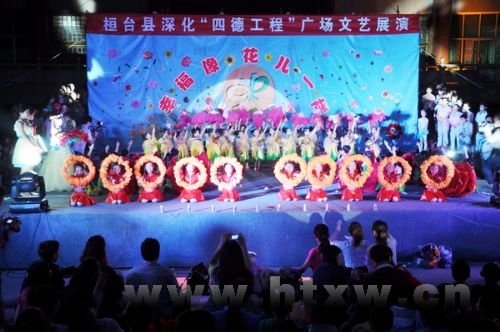 5月30日,全县深化“四德工程”系列广场文化展演活动在县博物馆广场举行。这是全县深化“四德工程”系列广场文化展演活动的蒲公英专场演出,近千名干部群众共同观看了本次演出活动。晚会在热烈欢快的集体舞蹈《盛世花开》中拉开帷幕,全场十六个节目赢得了阵阵喝彩。 (何子强 摄)