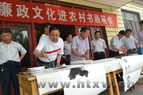 6月6日,荆家镇“廉政文化进农村”书画笔会来到该镇后刘村。来自全县的10余名书画家以廉政文化建设为主题,以梅兰竹菊荷等为创作素材,现场挥毫泼墨,创作了百余幅健康向上、格调高雅的书画作品,既丰富了廉政文化建设,又营造了欢乐祥和的气氛,受到干部群众欢迎。 (成国栋 张晓明 王文君 张晓萍 摄)