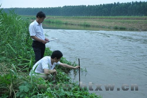 为确保闸涵、重点河道汛期安全通畅,马桥镇水利部门定期巡防观察镇域内5条主要河道水位,督促沿河村清除河内阻水障碍,做好薄弱堤段、无堤段和道口加固工作。图为马桥镇水利工作人员实地查看小清河控污闸段。 (何子强 李妍嫣 摄)