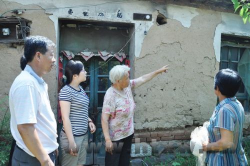 针对近期持续降雨、防汛形势严峻的特点,荆家镇在全面组织防汛工作的同时,高度重视人民群众的生命财产安全,积极做好危房排查,确保汛期危房、险房户安全度汛。图为王庄村“两委”成员在村民胡安栋家中查看房屋状况。