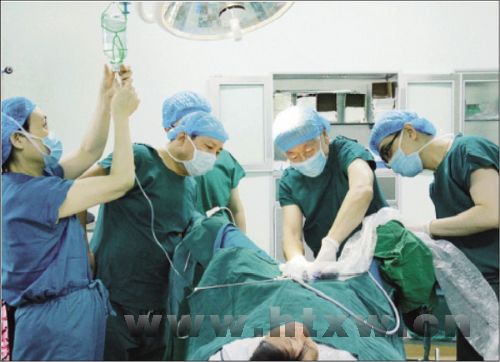 为了帮助刘先生解决疾患,万肖蓬带领泌尿医学中心的医生们进行了周密的术前讨论和术前准备,并为其实施了电子输尿管软镜配合下钬激光碎石取石术。因为该手术是将输尿管软镜由尿道进入,经输尿管进入肾盂,利用钬激光发出的冲击波将结石碎成粉末,且无残石,整个手术过程几乎无出血、无疼痛,手术仅用半小时,患者术后三天恢复出院。