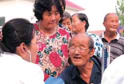 9月15日,县政协组织专家委员和九三学社的专家社员,到荆家镇伊家村开展医疗卫生、科普知识、法律咨询“三下乡”活动,受到了群众欢迎。图为专家义诊现场。