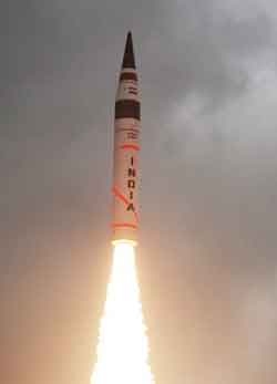 当地时间2013年9月15日,印度再次发射一枚“烈火-5”型远程弹道导弹,该型导弹射程超过5000公里,是印度目前射程最远的弹道导弹,可搭载核弹头。印度“烈火”系列弹道导弹在印度国防部综合制导导弹开发项目框架内研制。