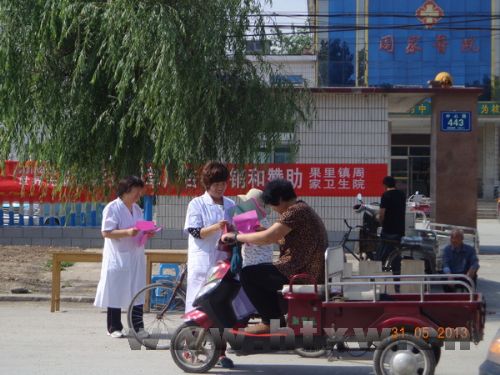 果里镇周家卫生院在基本公共卫生服务方面,采取多种形式进行健康教育宣传,提高为全体居民健康服务的水平,图为该院医护人员走上大集宣传高血压病防治知识。 (董兆云 耿翠叶 摄)