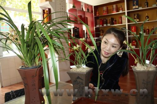 9月26日,山东省兰花协会鲁中分会工作人员正在对参加兰花展的兰花进养护。据了解,由山东省兰花协会主办,鲁中分会承办的首届兰花展将于10月1日至2日在桓台县博物馆举行,届时将有来自全省各地的上千盆名贵兰花参展。