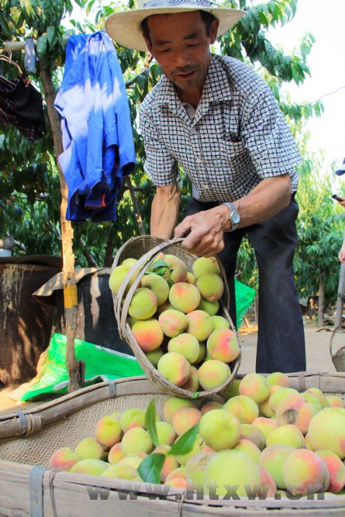 临近中秋,果里镇后埠村村民李金昌种植的30亩“白塔蜜桃”开始收获,预计今年产量可超过5万斤。据悉,“白塔蜜桃”因汁多肉厚的特点一经上市便受到消费者喜爱。图为果农正在整理刚摘下的桃子。