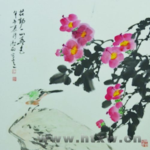 阴澍雨喜欢下乡,经常深入乡间、田野、水库、山林,住草棚、吃粗粮,爬山越岭。他经常在艰难的环境里,带着画夹,背着照相机,风里来雨里去,熟悉山野奇花野草,观察活跃在林间的雉鸡山雀,这也给他的生活增添了无限乐趣。繁衍在山坡上的野花劲草,不管是春暖时节茂盛壮实,或是秋冬时候荒凉、苍劲,都有一种野生苍茫情趣,是他艺术取之不尽的源泉,也给他在艰苦岁月里寄托了无限情思。看阴澍雨的水墨花鸟画作品,不难体味到是他人生写照,是他在外学习中所追求物我交融的美学境界的产物。