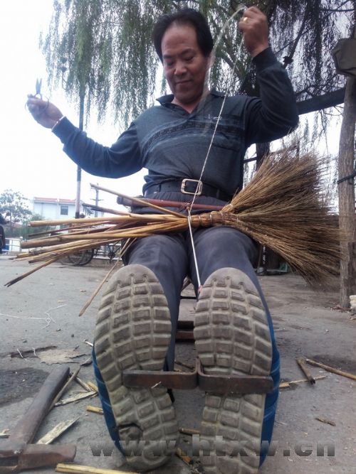在桓台老乌河桥头,有一个手艺人——高希前,他用双手缚笤帚已有20多年了。他说手艺是老辈传下来的,工序一道也不能简略。