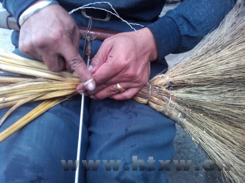 年近五十岁的高希前是索镇东镇村人。他用高粱穗扎出来的笤帚深受群众喜爱。记者了解到,缚笤帚是个手艺活,看似简单,做起来却很麻烦,如今会这门手艺的人已不多见。采访中,记者注意到高师傅的两只手看上去很沧桑,手指上布满了裂开的口子,双手也比较弯曲。