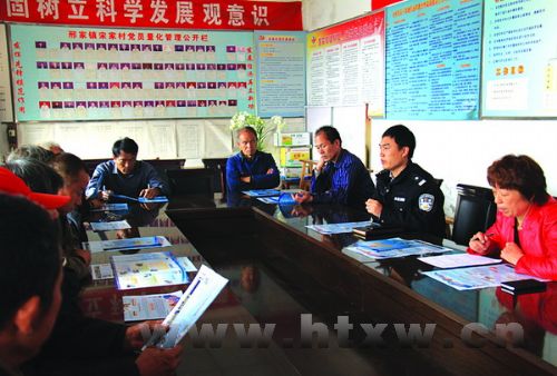 活动中,民警借助腾讯微博、张贴宣传材料、警民恳谈等多种方式,让辖区群众清楚了解犯罪分子常用作案手法及惯用的“踩点符号”,提醒辖区群众及时防范,遇到可疑符号时应尽快报警。据了解,本次活动共发放防范宣传单200余份。图为邢家派出所举办警民恳谈会,畅谈安全防范常识。 (苗娟 李学 摄)