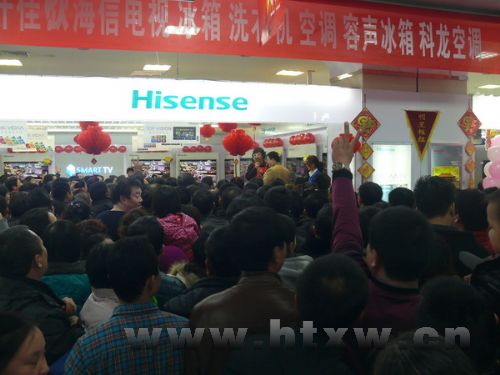 作为传统的大件家电产品,彩电、冰箱、空调等向来是春节前销售火爆的家电类产品,一向善于抓住商机的商家,当然不会错过这样的促销好时机。1月11日14时许,淄博电视台主持人王大明白来到惠仟佳购物广场家电卖场砍价,海信品牌全系列产品、容声冰箱、科龙空调降价促销,现场销售情况火爆。