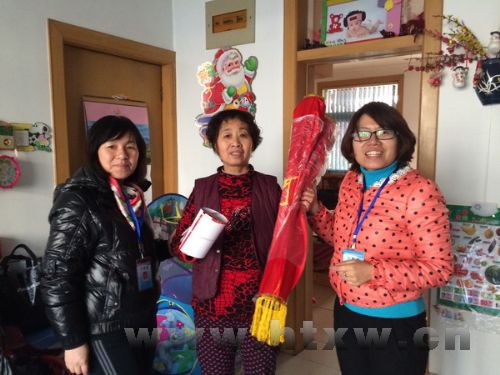 1月15日,宝龙、兴华等社区工作人员带着慰问品来到社区老党员、企退人员、困难户家中走访慰问,送上了新春的慰问和节日的祝福。图为工作人员为小区企退人员送上灯笼、春联等慰问品。 (张擎 张玲 刘玉双 摄)