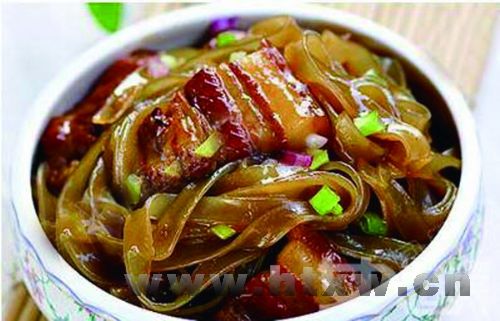 做法:1、锅内烧开水,放入切块猪肉氽烫至水开,捞起洗净,沥干水;2、锅内放1小匙油,放入猪肉块,小火煸至微黄出油脂;3、捞起肉块放入冰糖,小火炒成焦糖色;4、放入肉块炒至均匀上色,加入葱段、八角、姜片、花雕酒炒出香味;5、加入清水及所有调味料,加盖大火煮开后转小火炖约60分钟;6、煮至中途,把葱段和姜片捞出;7、粉条提前用温水泡软;8、当锅内的水炖至1/3时,放入泡软的粉条;9、中小火开盖烹煮,粉条煮的时间要略长些;10、最后煮至粉条软化,加少许盐调味即可。