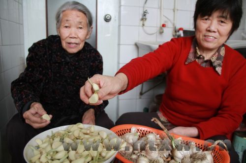 泡腊八蒜是北方,尤其是华北地区的一个习俗。腊八蒜,顾名思义就是在阴历腊月初八的这天来泡制蒜。将剥了皮的蒜瓣儿放到一个可以密封的罐子里面,然后倒入醋,封上口放到一个冷的地方。慢慢的,泡在醋中的蒜就会变绿,最后会变得通体碧绿,如同翡翠碧玉一般。