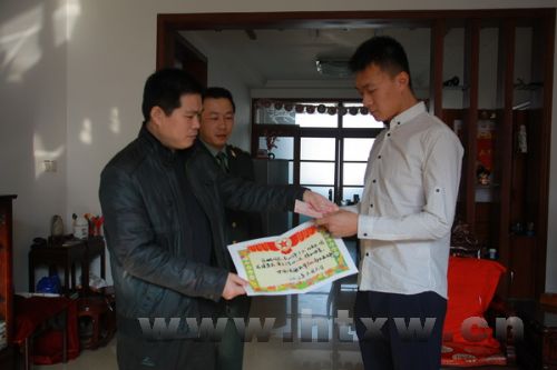 为进一步激发我县广大青年应征入伍的政治热情,我县自2012年起,严格落实军人立功受奖喜报送达工作,县民政局收到现役军人的立功受奖喜报和通知书后进行登记建档,将立功受奖喜报和通知书送到现役军人家属家中,并给予相应的物质奖励。具体标准为:当年荣立个人一等功和授予个人荣誉称号的,给予慰问金5000元;当年荣立个人二等功的,给予慰问金3000元;当年荣立个人三等功的,给予慰问金1000元。