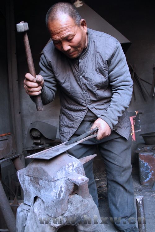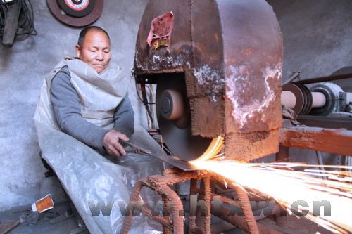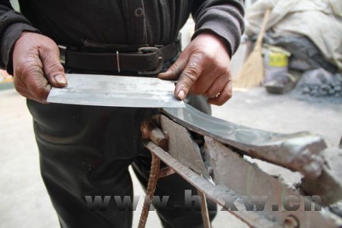 走进唐山镇张茂村,远处传来“叮叮当当……”的打铁声。记者走进村民伊茂会家时,老人正在自己不大的工作间里紧张地忙碌着。