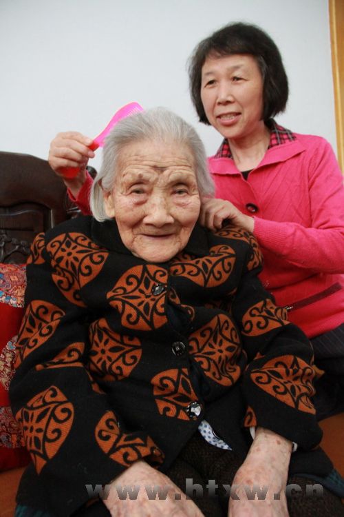 女儿李会云天天为107岁老母亲宗立美梳理头发