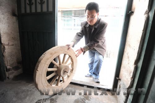 于修国,唐山镇贾家村人,毕业于山东工艺美术学院,现任淄博职业学院艺术系副主任。于修国喜欢上民俗工具最初可以追溯到30年前中学课本,马均的水车、黄道婆的纺车都给他留下了深刻印象。于修国说:“上世纪90年代初,山东工艺美术学院徐思民老师在课堂上讲授‘通经断纬’的缂丝工艺,至今在我脑海中挥之不去。我逐渐对那些早已废弃不用的手工工具产生了一种莫名的感情,它们是性格各异的老朋友,我不知不觉中把它们聚集在了我的家中。时间一长,家里越来越乱:石头的在院子里,木头的在储藏室,小个的在橱子里,大个的在车库。母亲经常抱怨‘人家都是买好东西,你净买些破烂’,再加上经济状况越来越拮据,我一度有点坚持不下去了。”