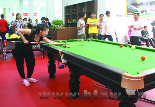 俯身微屈,前额下贴,瞄准,推杆,撞球进洞……在台球场地上,十几名台球爱好者竞相角逐,以精湛的技艺,在球桌上用推杆演绎了一场场精彩绝伦的比赛。现场观众不时为球艺高超的选手和激烈的赛事,报以掌声和欢笑。参加台球比赛的县公安局果里派出所副所长许磊告诉记者,平日里,他喜欢以打台球的方式来放松疲劳的身体和紧绷的神经,“来参加这次运动会,就是以球会友,重在参与,公安工作来不得半点马虎,要赢得一场台球比赛的胜利同样如此。用运动来放松工作的疲惫,让生活更加健康。”