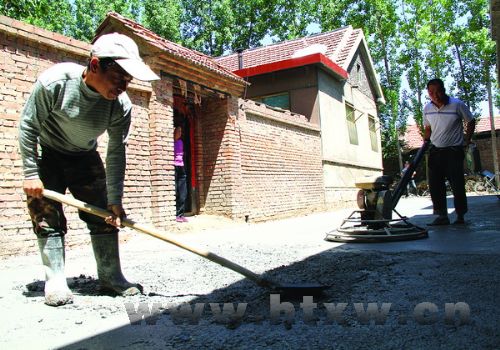 为方便村民出行,荆家镇荆三村投资30余万元,赶在雨季来临之前,对村内背街小巷进行路面硬化。