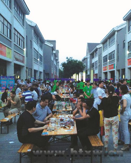 鸿嘉星城消暑嘉年华之青岛啤酒节于6月12日在售楼处开幕,活动至6月27日晚,营业时间从17时至23时,冰爽一整夏。同时,鸿嘉星城锦上商业街为桓台市民缔造名副其实的不夜城:冰爽青啤、馨香烤肉、世界杯大屏幕精彩放送、大牌群星载歌载舞,好戏连连,精彩不断。图为啤酒节活动现场。