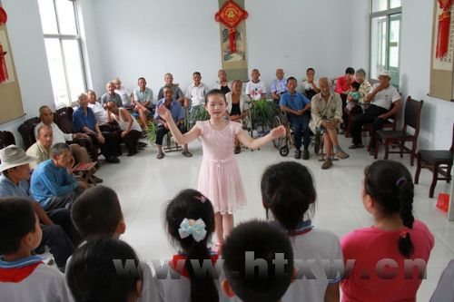 9时左右,老人们陆续来到敬老院活动室,在家长的鼓励和老人的期盼中,一位叫王思远的小女生带头开始了今天的表演活动。渐渐地,孩子们也都活跃起来,准备的节目也是丰富多彩,唱歌、歌伴舞、相声、街舞、还有快板,最后孩子们集体献上两首合唱曲目。还有的孩子带来了自己的彩笔画和折纸作为礼物,送给敬老院的老人们。孩子们表演结束后,家长们也纷纷一展所长,为老人们理发、量血压等。