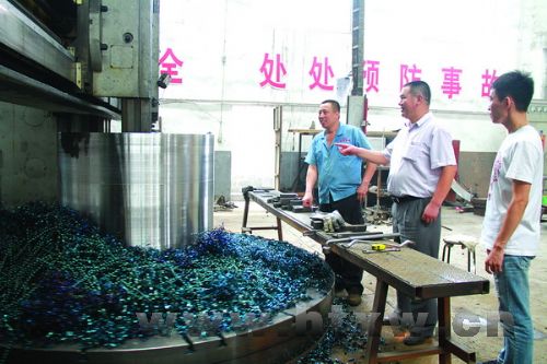 7月31日,记者跟随起凤镇安监站工作人员来到辖区内各企业,检查企业安全生产情况,强化企业消防安全责任制,对发现的问题提出整改意见,帮助企业消除安全隐患。图为起凤镇安监站工作人员在昌河机械有限公司生产车间检查安全生产情况。 (李凯 魏娅丛 摄)
