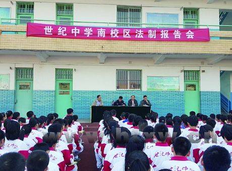 日前,县世纪中学南校区邀请索镇派出所相关负责人来校作法制教育专题报告。从初中学生的实际出发,以案释法,以法论事,让学生明白哪些行为是违法犯罪以及违法犯罪行为的恶劣后果,进一步提高了学生的法制观念,增强了明辨是非和自我保护的能力。(王希山 摄)